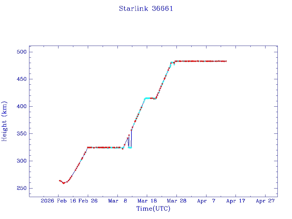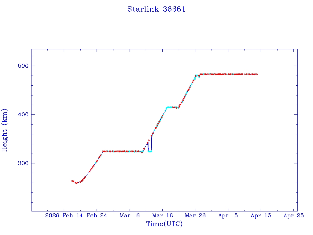 | Starlink 36661 | S67831 | O | 2026 Feb 16 | * | - |  |  |  |