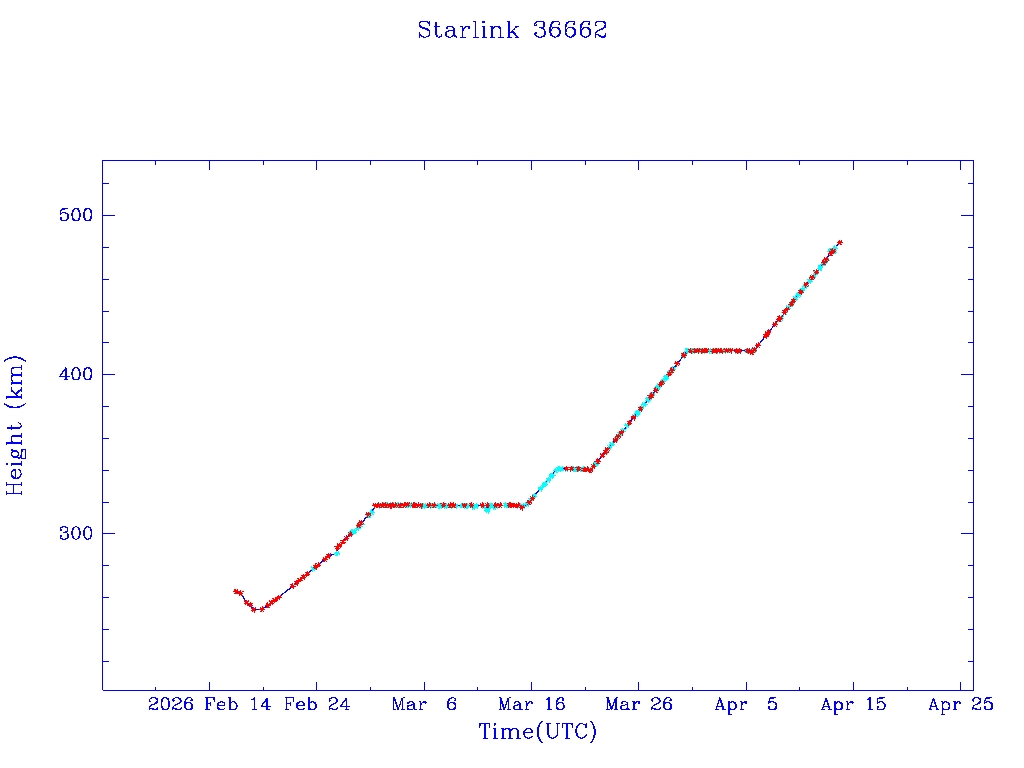 | Starlink 36662 | S67832 | O | 2026 Feb 16 | * | - |  |  |  |