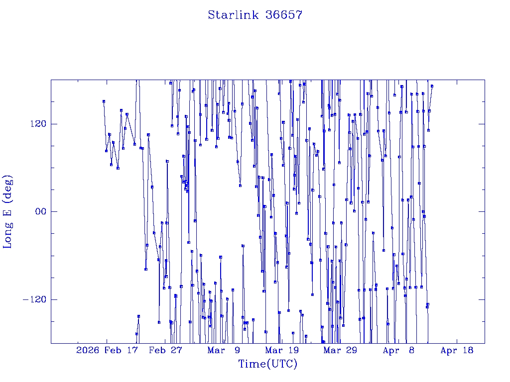 | Starlink 36657 | S67835 | O | 2026 Feb 16 | * | - |  |  |  |