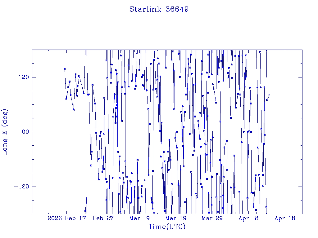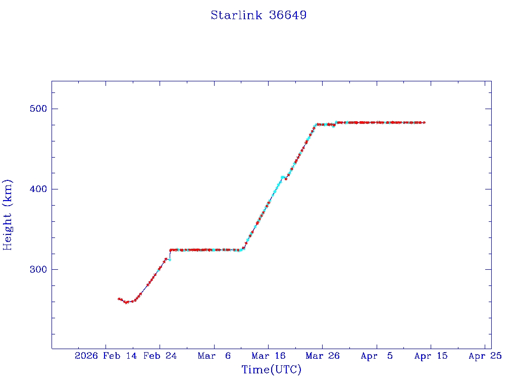 | Starlink 36649 | S67837 | O | 2026 Feb 16 | * | - |  |  |  |