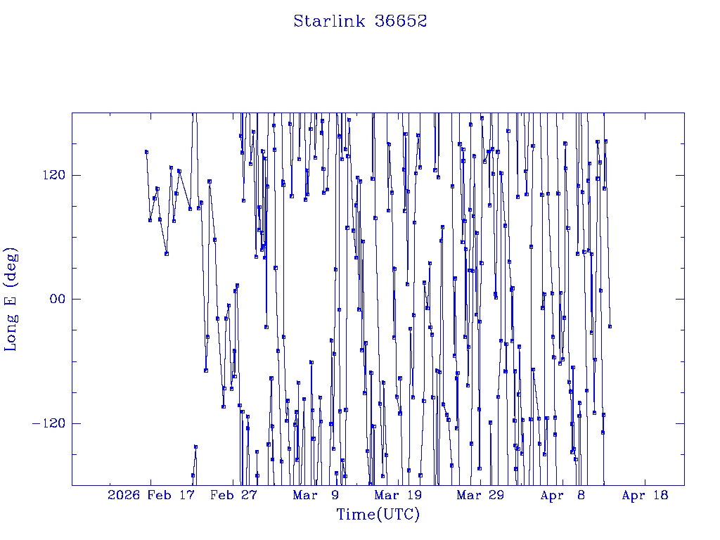 | Starlink 36654 | S67838 | O | 2026 Feb 16 | * | - |  |  |  |
