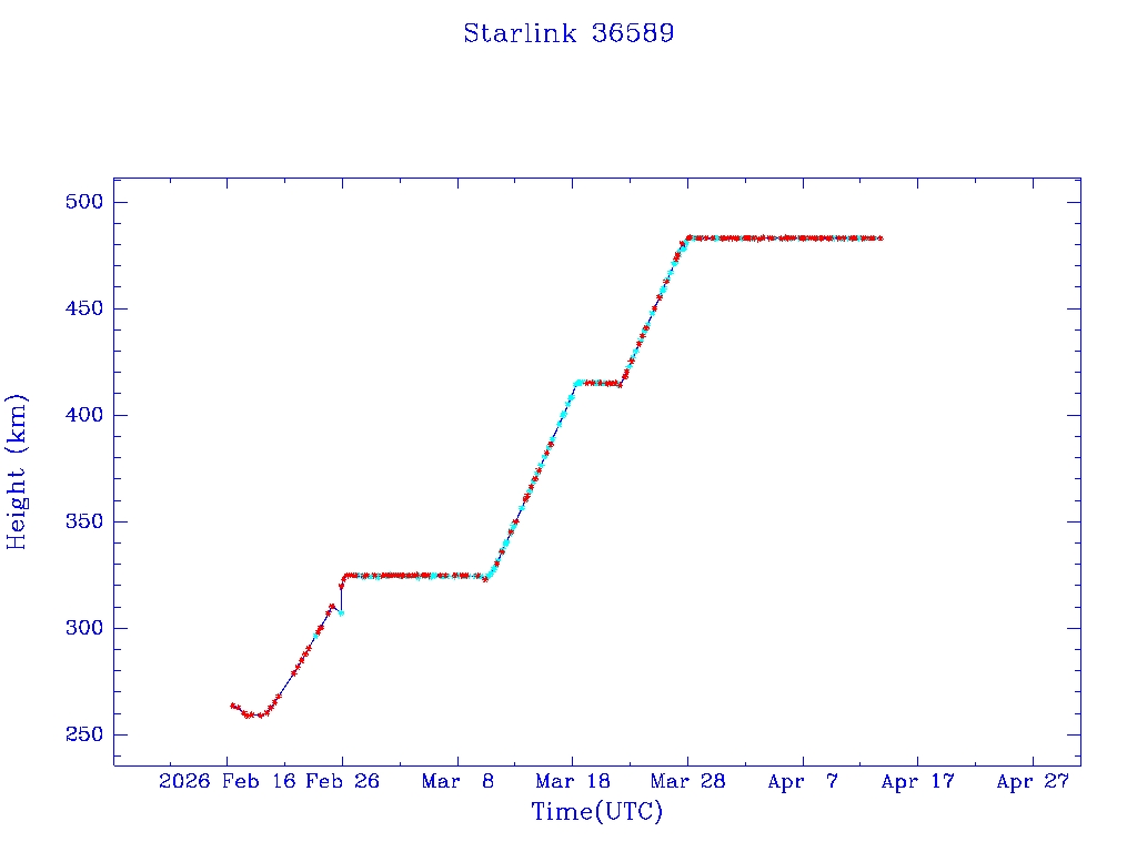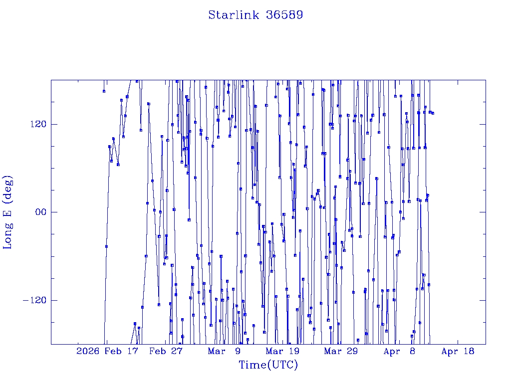 | Starlink 36589 | S67843 | O | 2026 Feb 16 | * | - |  |  |  |