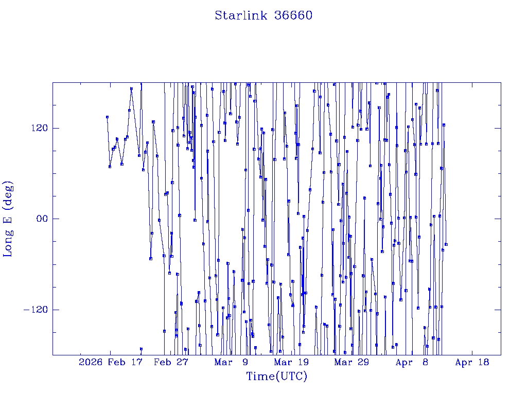 | Starlink 36658 | S67846 | O | 2026 Feb 16 | * | - |  |  |  |