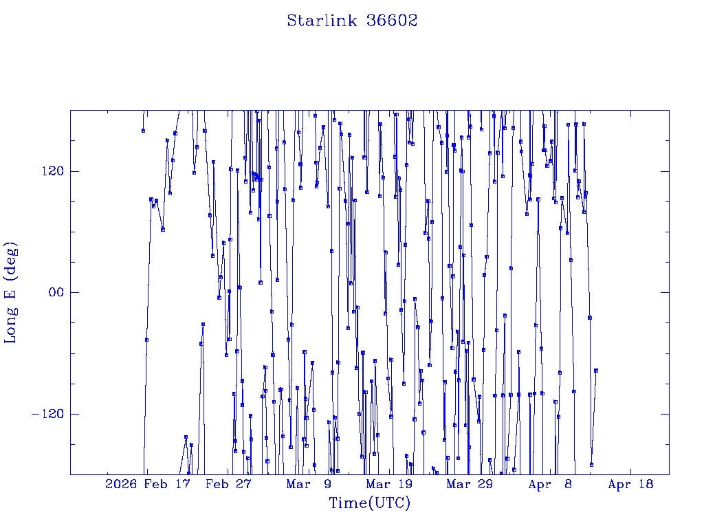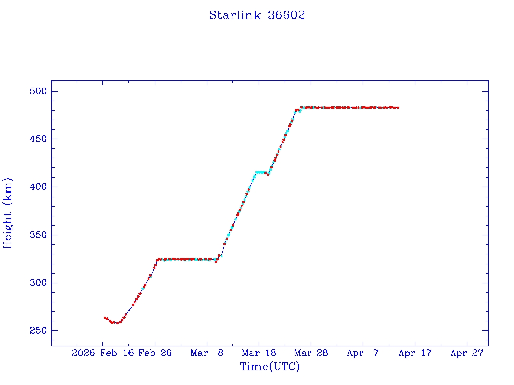 | Starlink 36602 | S67849 | O | 2026 Feb 16 | * | - |  |  |  |