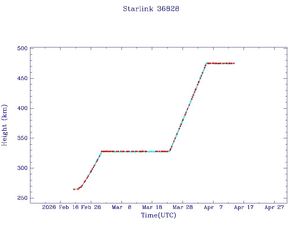 | Starlink 36828 | S67857 | O | 2026 Feb 20 | * | - |  |  |  |