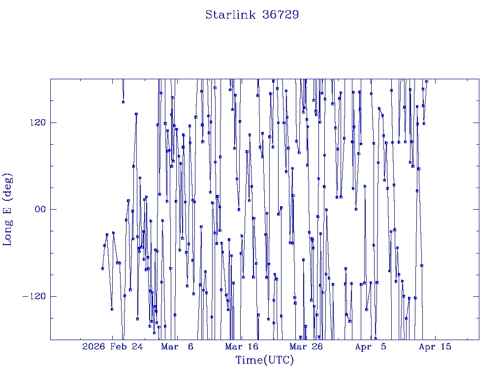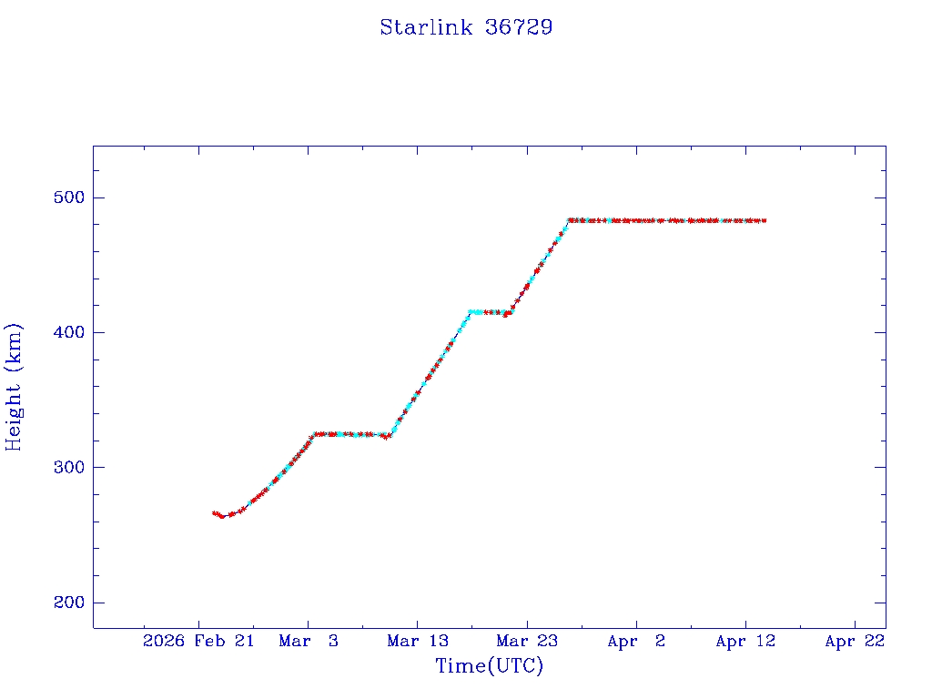 | Starlink 36729 | S67905 | O | 2026 Feb 22 | * | - |  |  |  |
