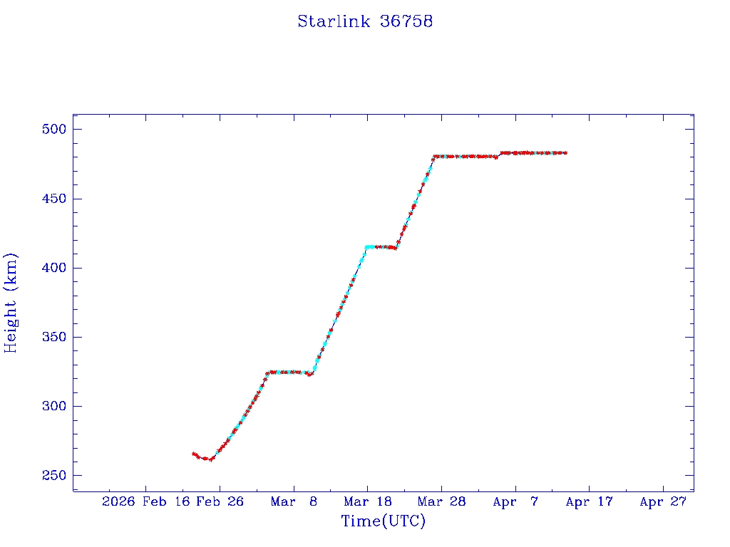 | Starlink 36758 | S67926 | O | 2026 Feb 22 | * | - |  |  |  |