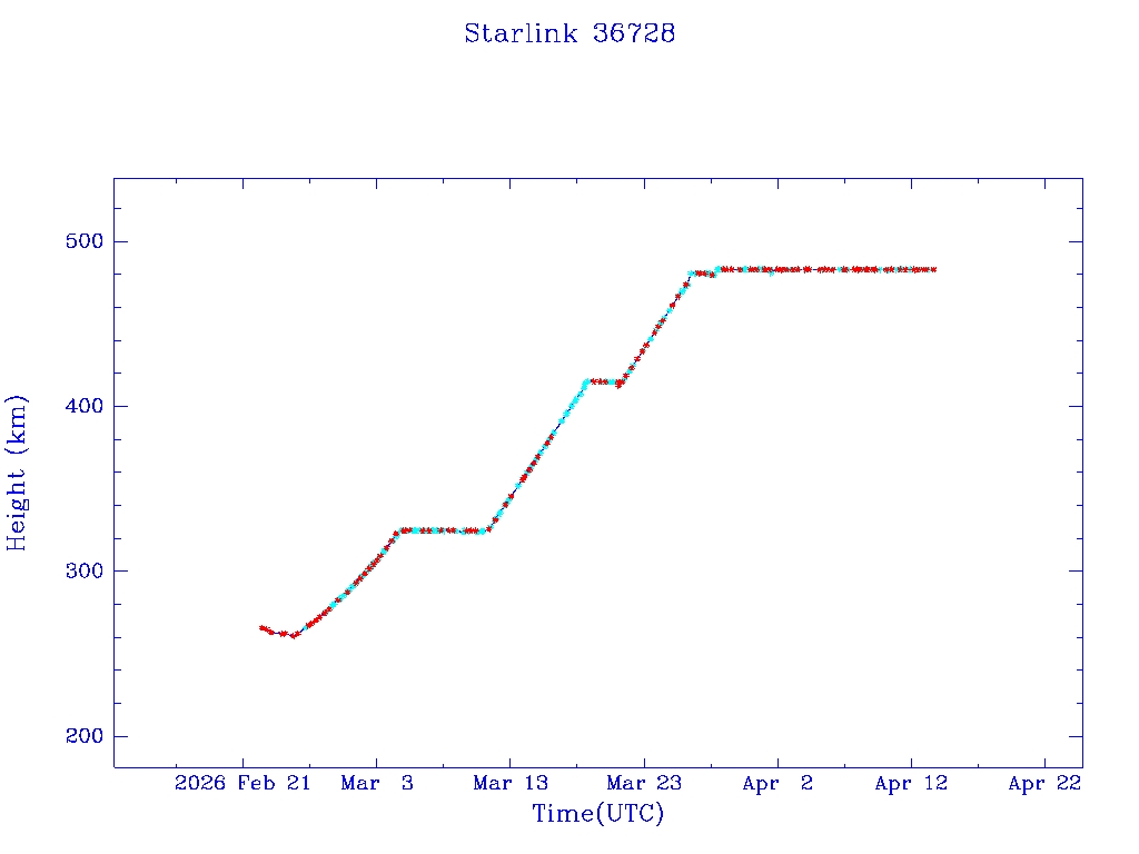 | Starlink 36728 | S67927 | O | 2026 Feb 22 | * | - |  |  |  |