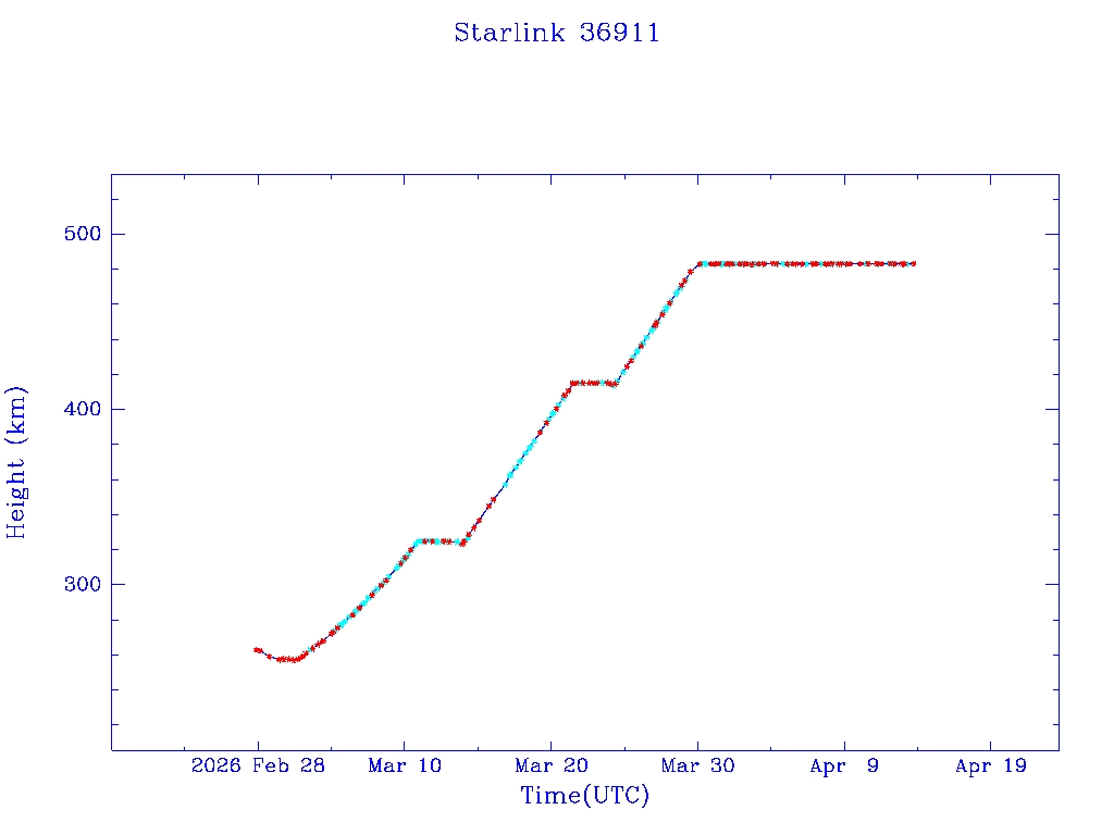 | Starlink 36911 | S68008 | O | 2026 Feb 27 | * | - |  |  |  |
