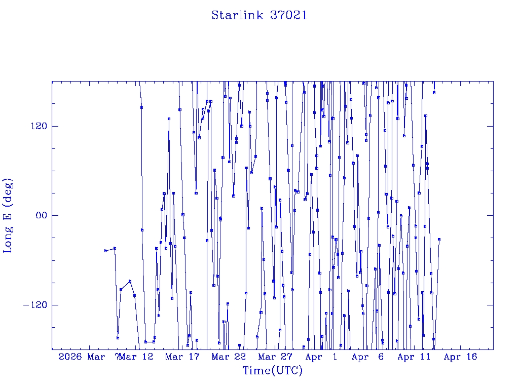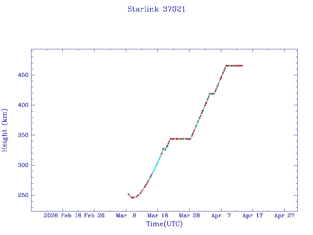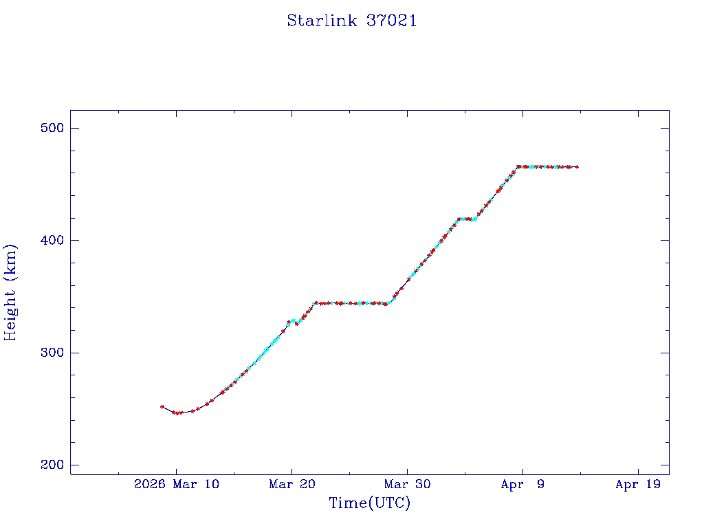| Starlink 37021 | S68105 | O | 2026 Mar 8 | * | - |  |  |  |