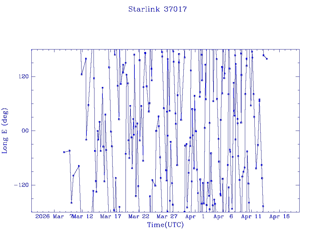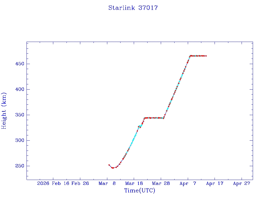 | Starlink 37017 | S68108 | O | 2026 Mar 8 | * | - |  |  |  |