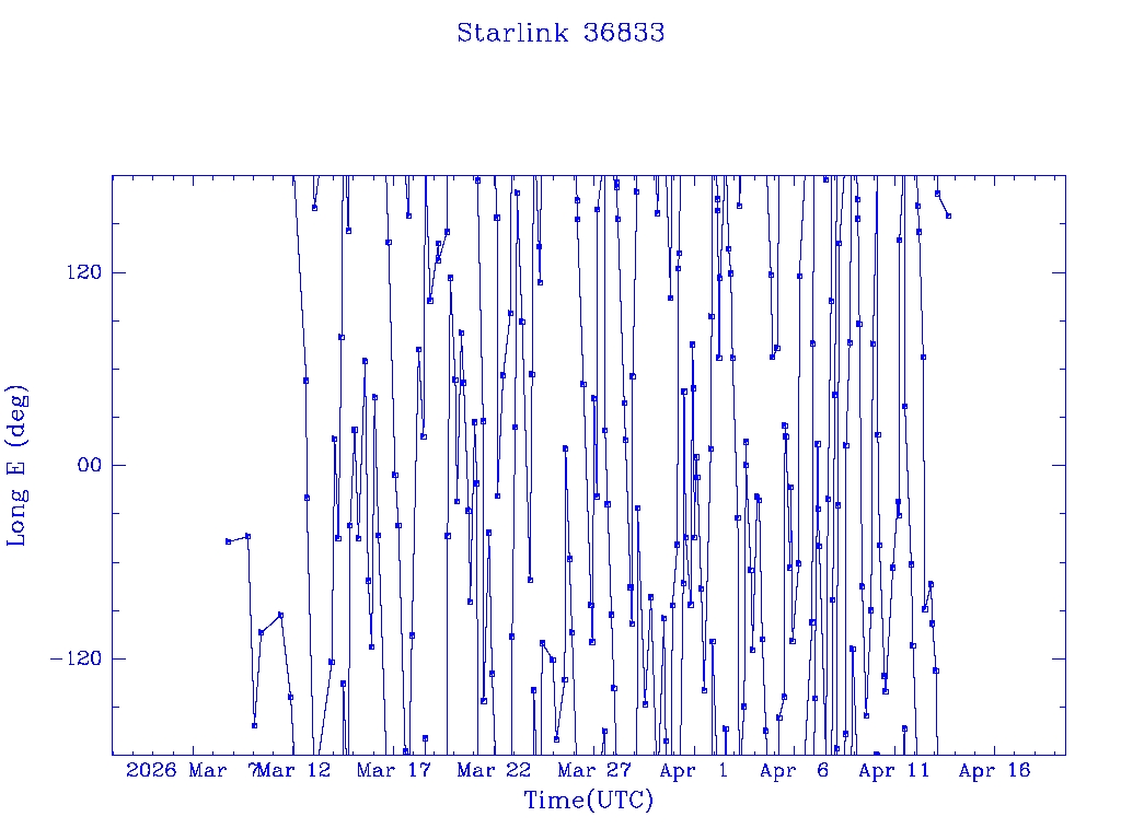 | Starlink 36833 | S68109 | O | 2026 Mar 8 | * | - |  |  |  |
