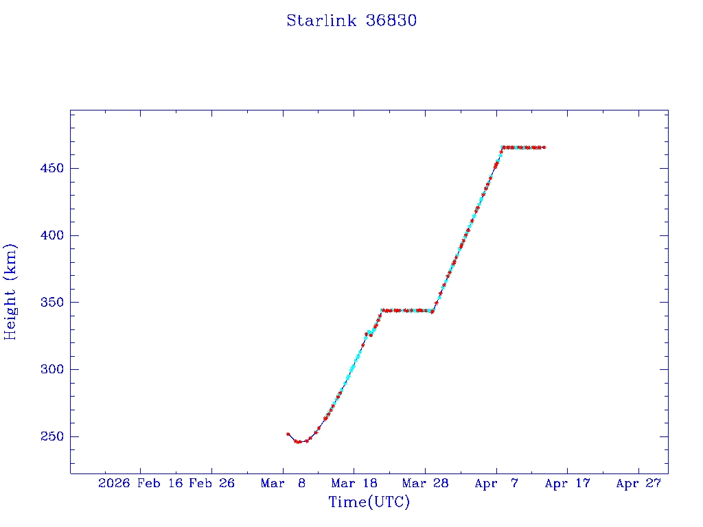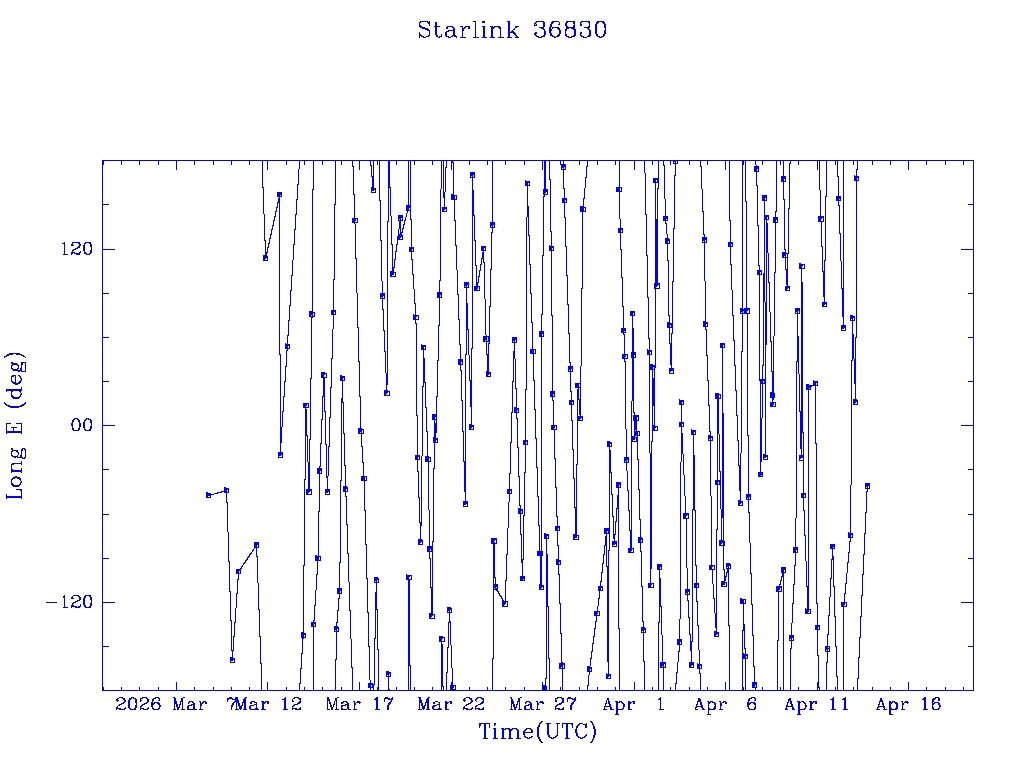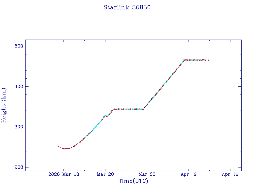 | Starlink 36830 | S68110 | O | 2026 Mar 8 | * | - |  |  |  |