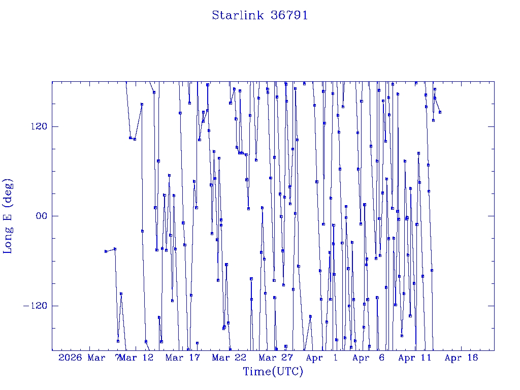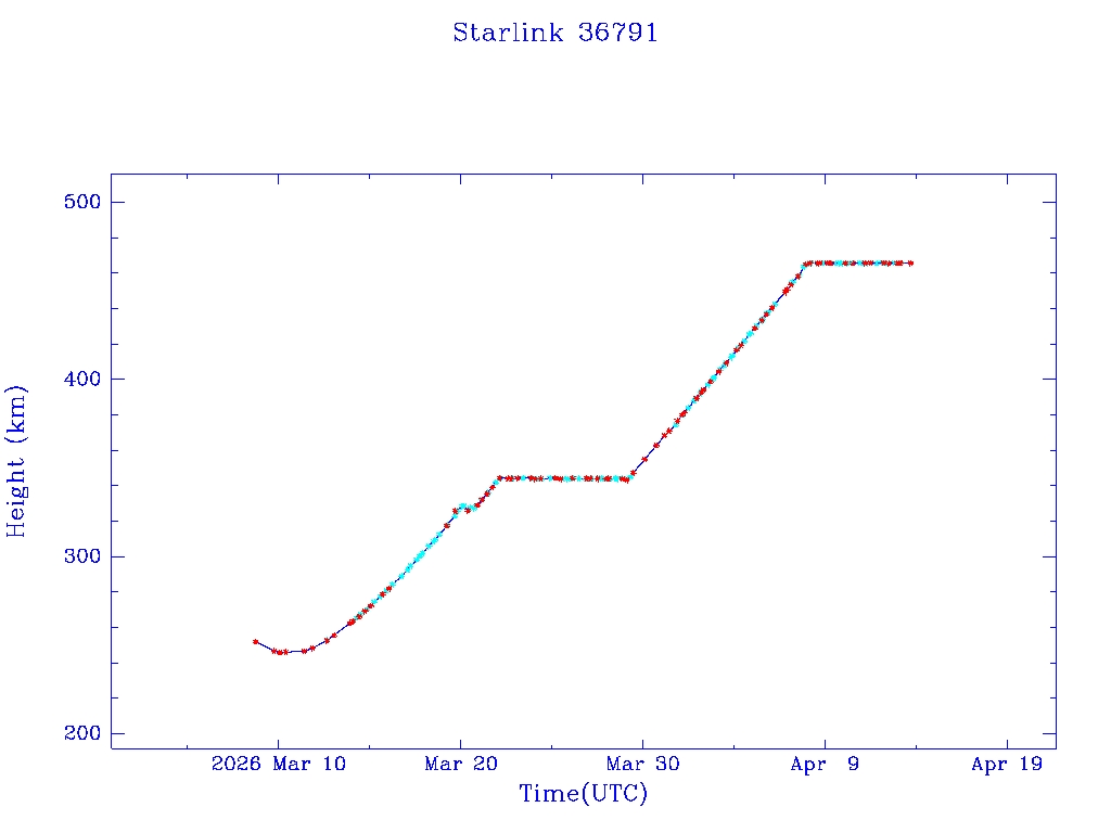 | Starlink 36791 | S68111 | O | 2026 Mar 8 | * | - |  |  |  |