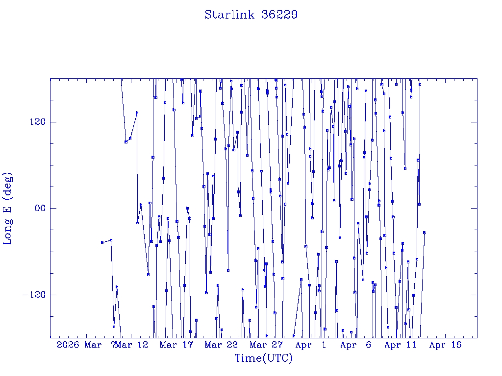 | Starlink 36229 | S68114 | O | 2026 Mar 8 | * | - |  |  |  |