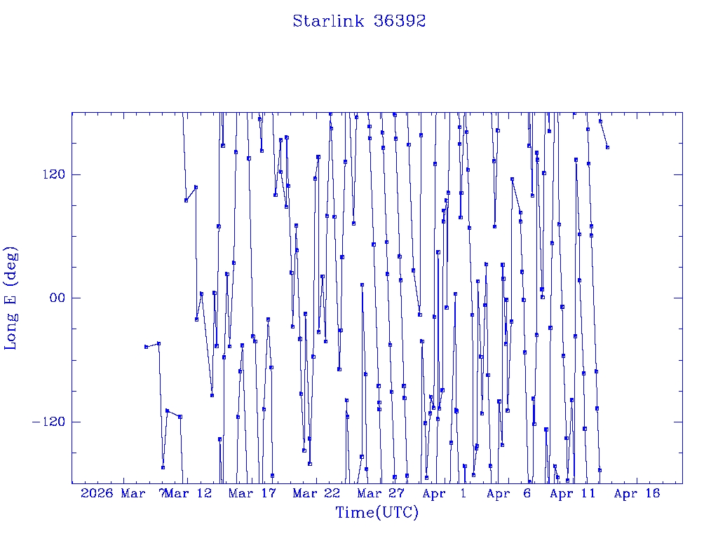 | Starlink 36392 | S68115 | D | 2026 Mar 8 | * | - |  |  |  |