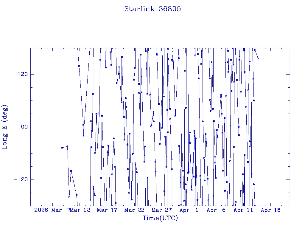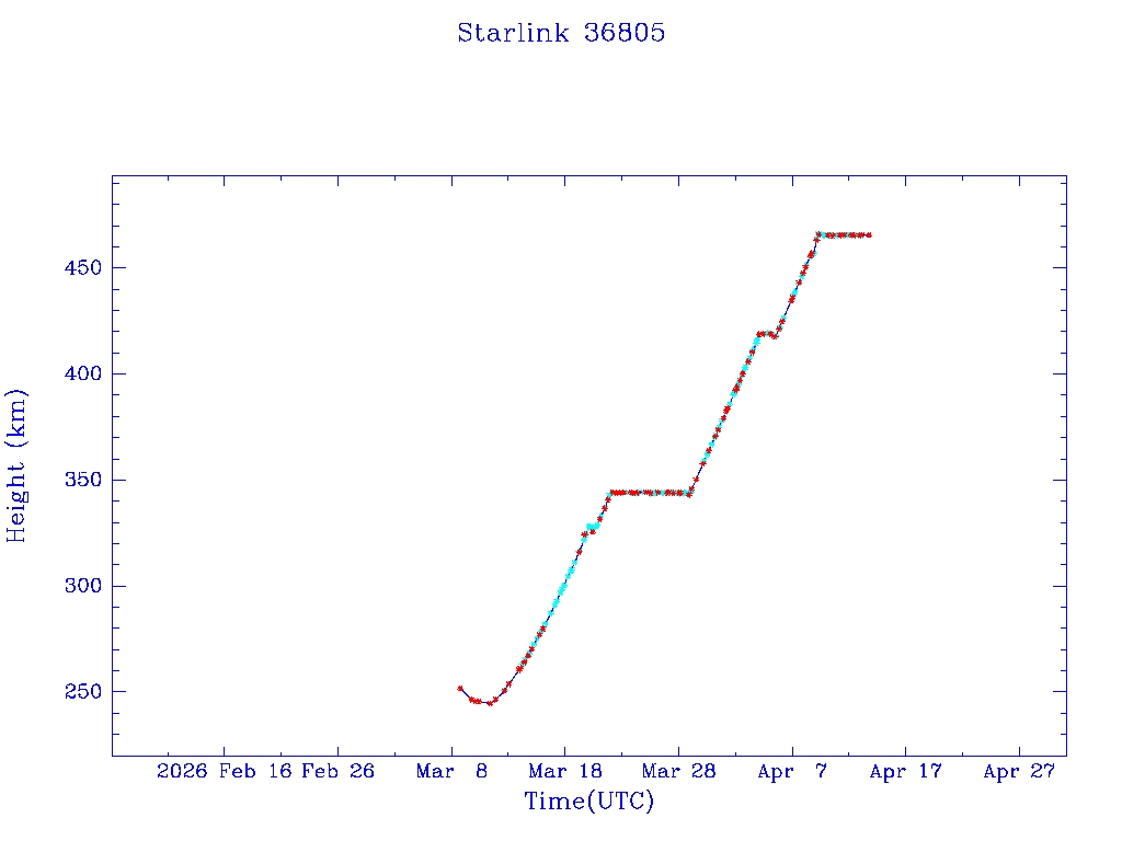 | Starlink 36805 | S68116 | O | 2026 Mar 8 | * | - |  |  |  |