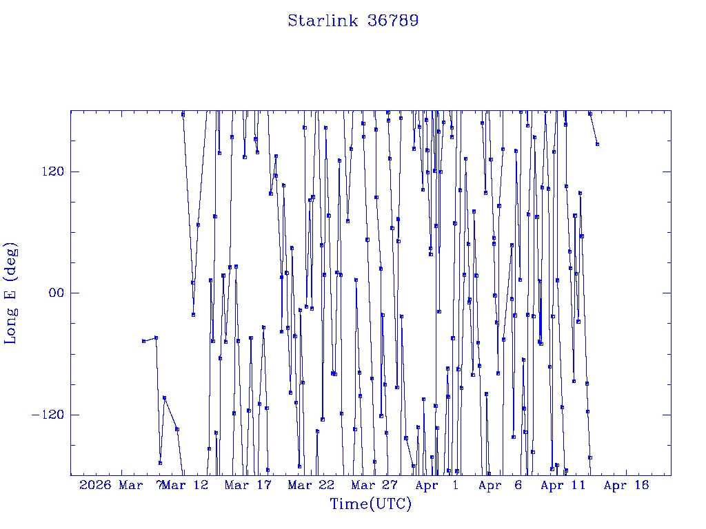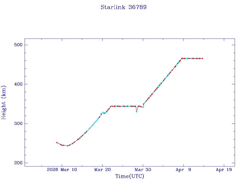 | Starlink 36789 | S68118 | O | 2026 Mar 8 | * | - |  |  |  |