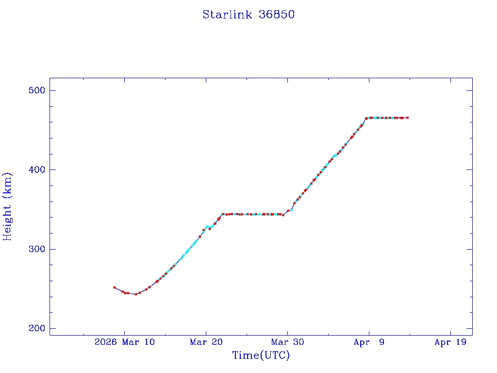 | Starlink 36850 | S68119 | O | 2026 Mar 8 | * | - |  |  |  |