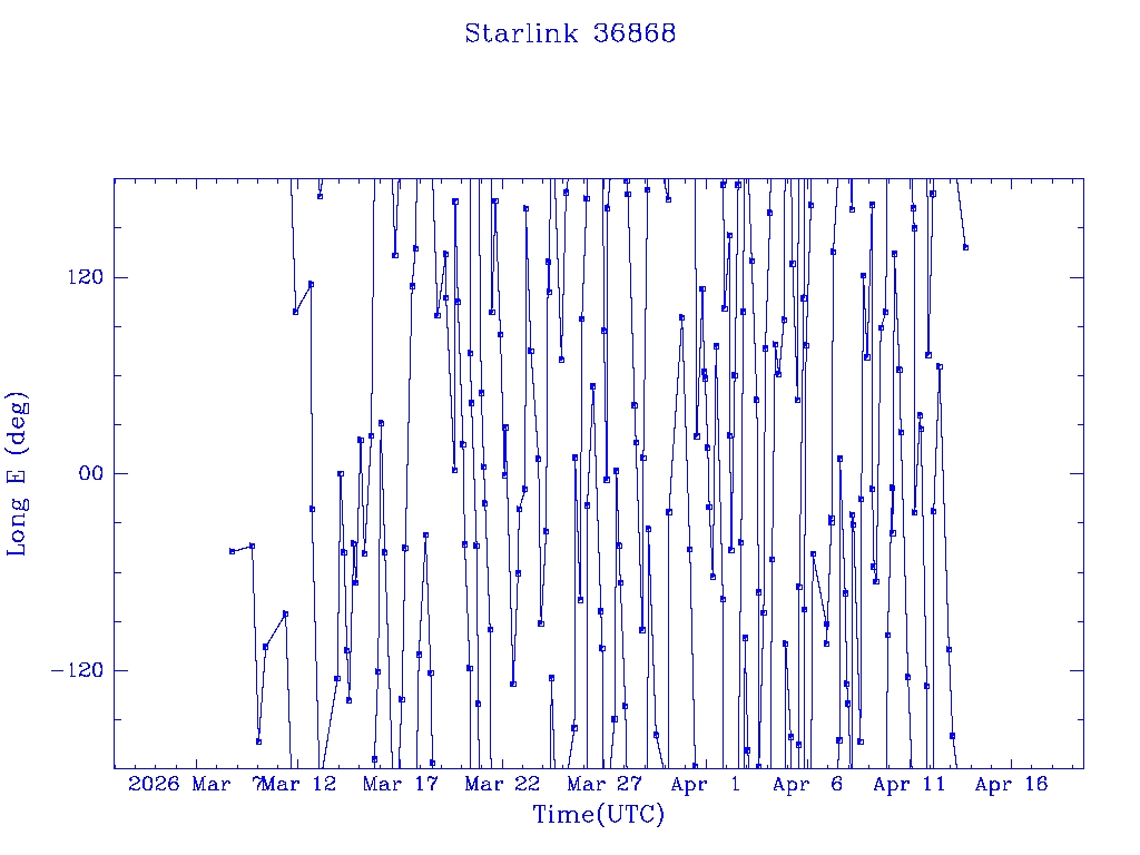 | Starlink 36868 | S68120 | O | 2026 Mar 8 | * | - |  |  |  |