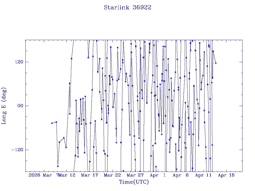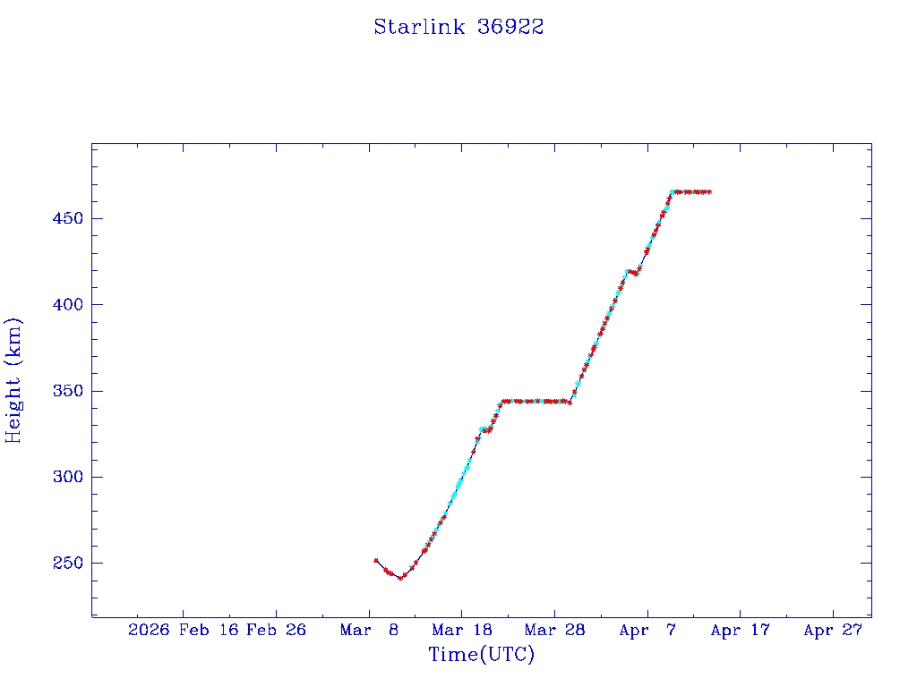 | Starlink 36922 | S68123 | O | 2026 Mar 8 | * | - |  |  |  |
