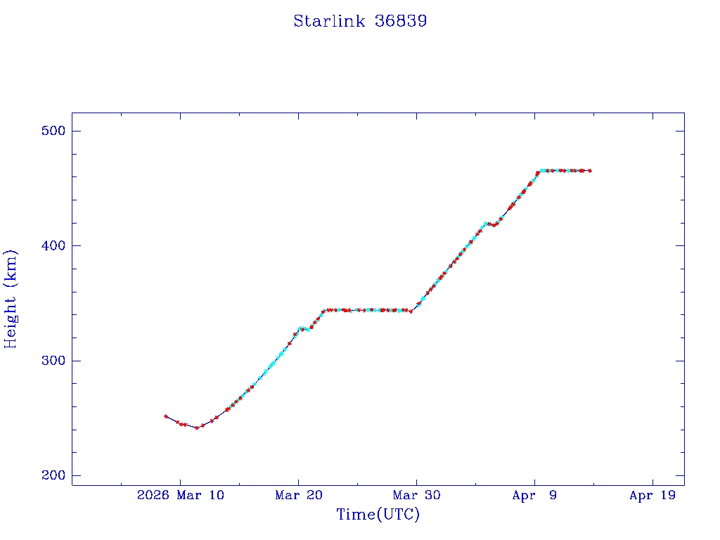 | Starlink 36839 | S68125 | O | 2026 Mar 8 | * | - |  |  |  |