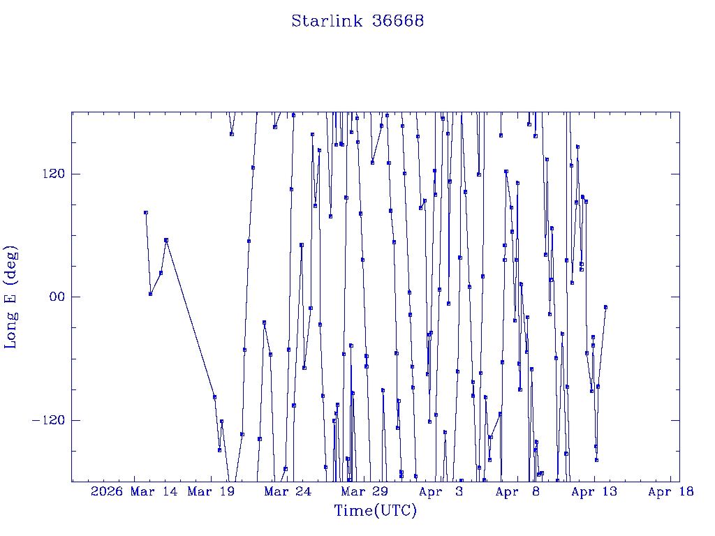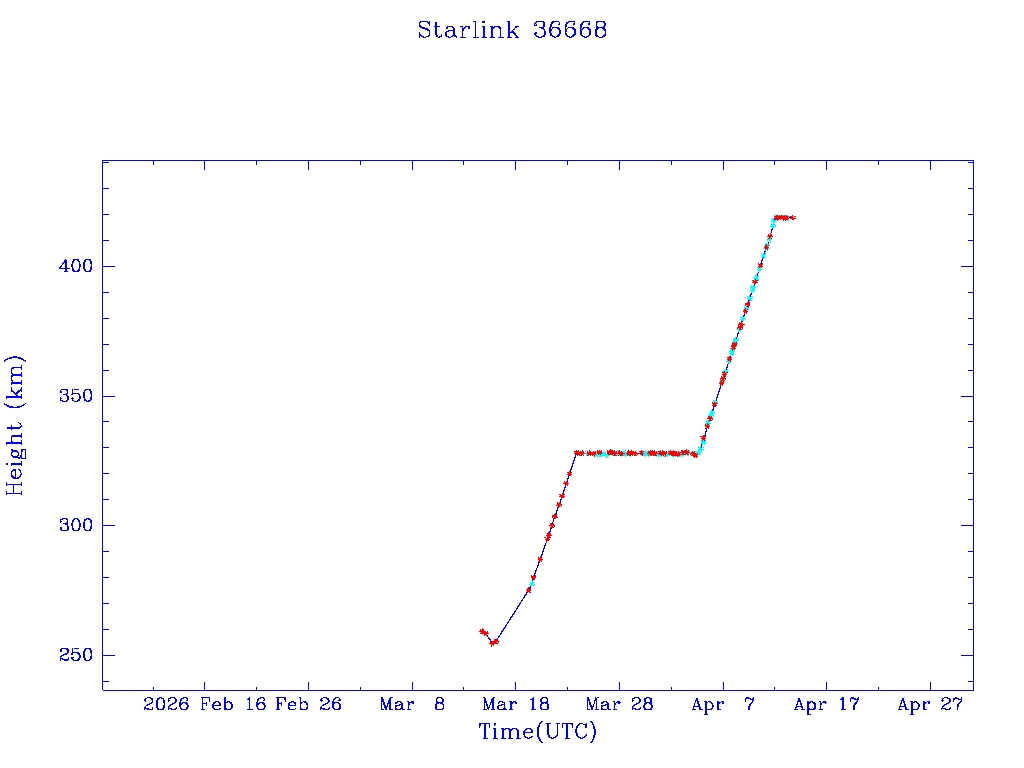 | Starlink 36668 | S68177 | A | 2026 Mar 14 | * | - |  |  |  |