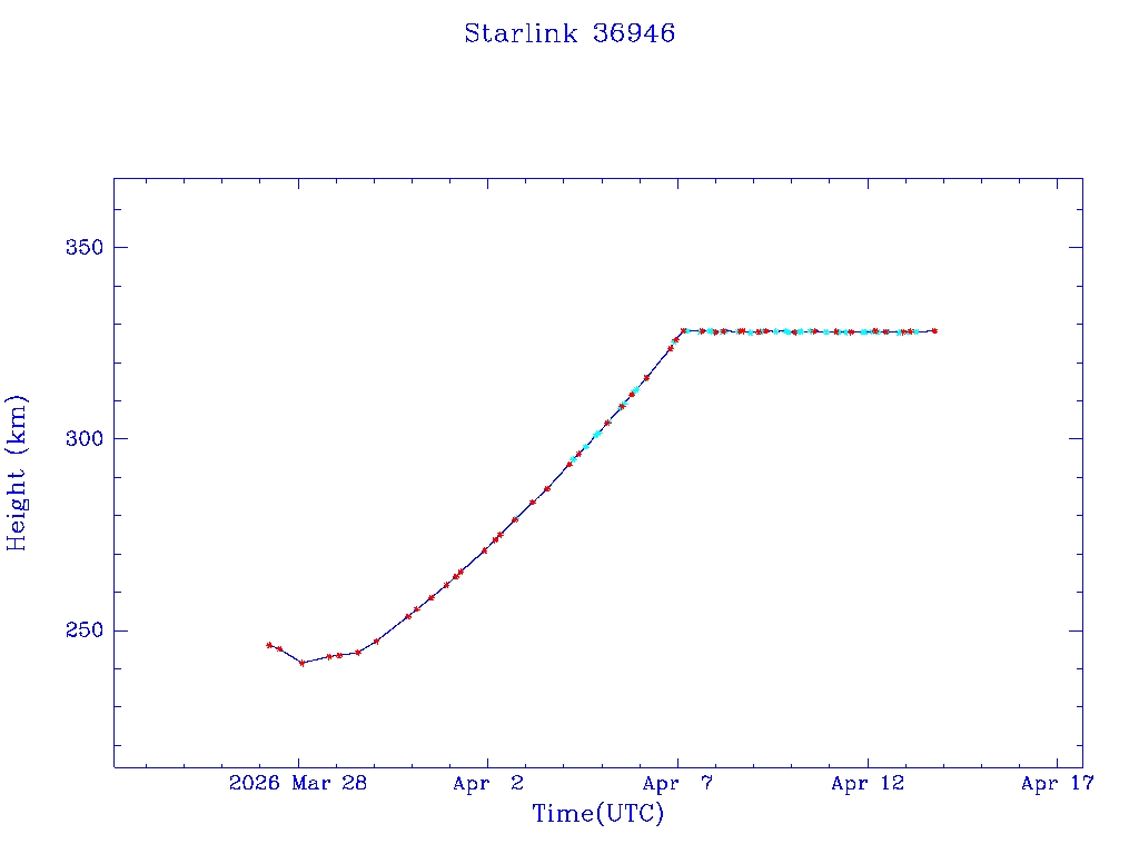 | Starlink 36946 | S68382 | D | 2026 Mar 26 | * | - |  |  |  |