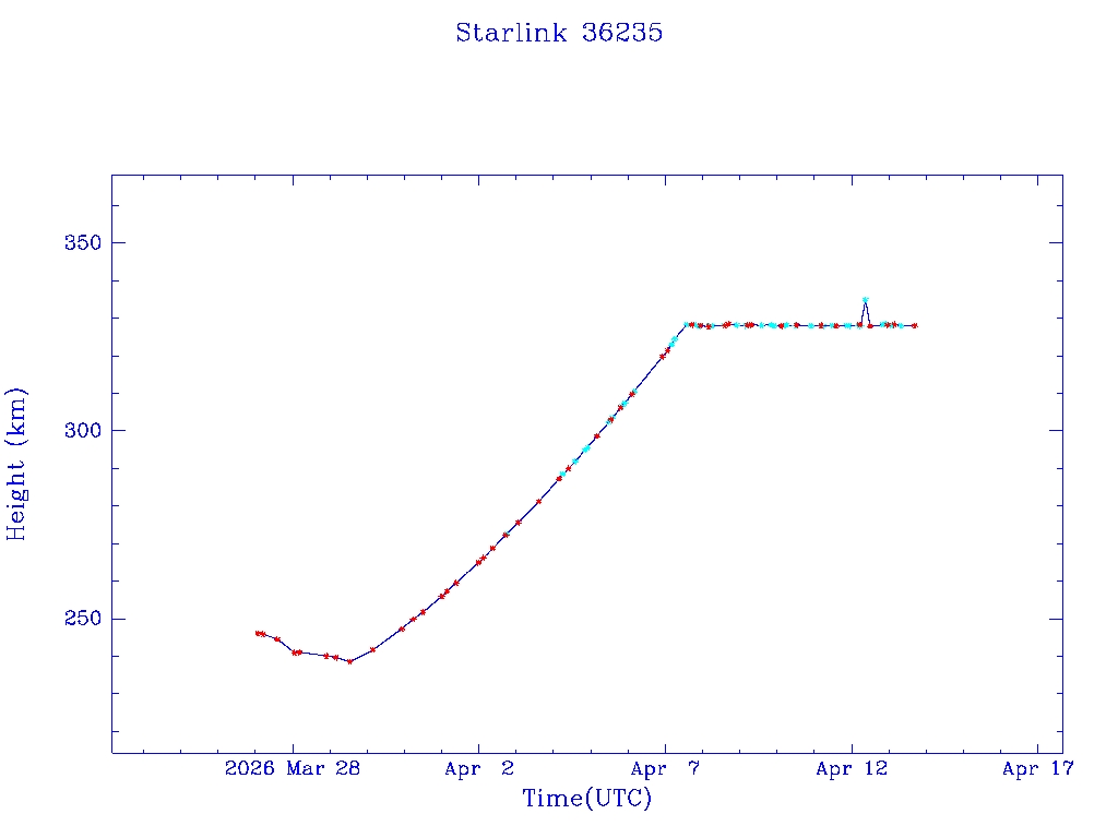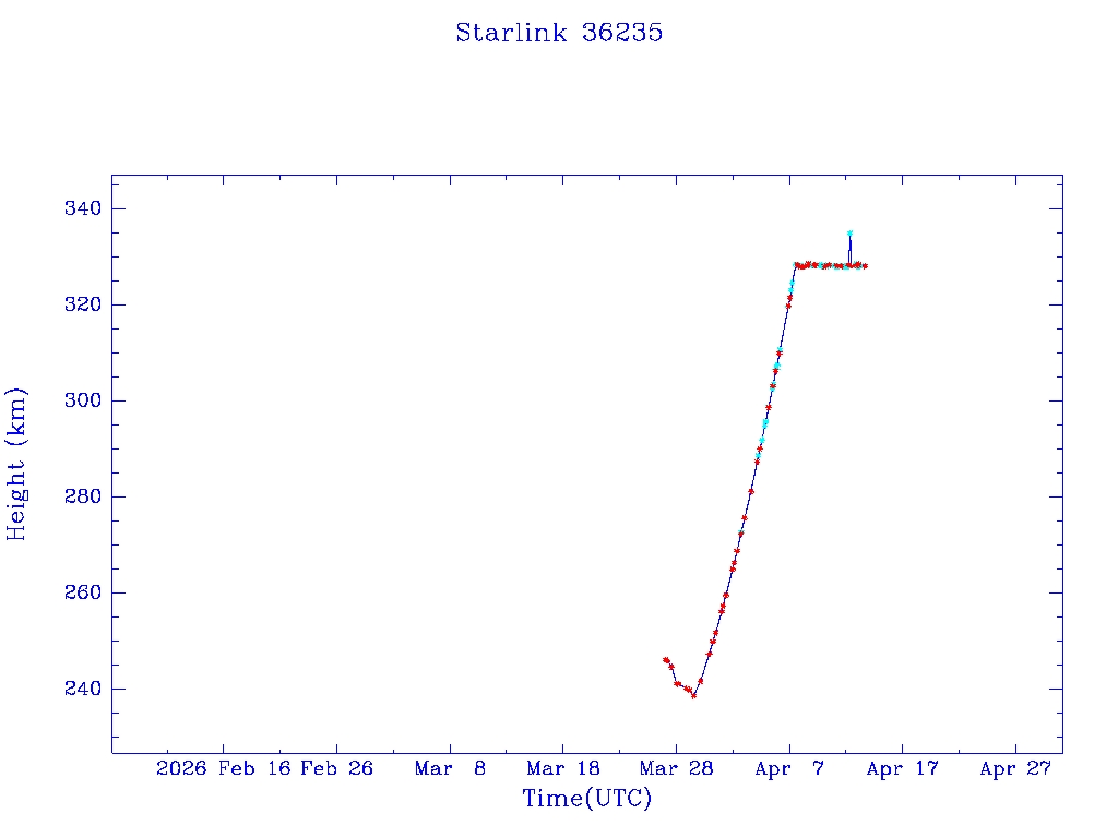 | Starlink 36235 | S68400 | D | 2026 Mar 26 | * | - |  |  |  |