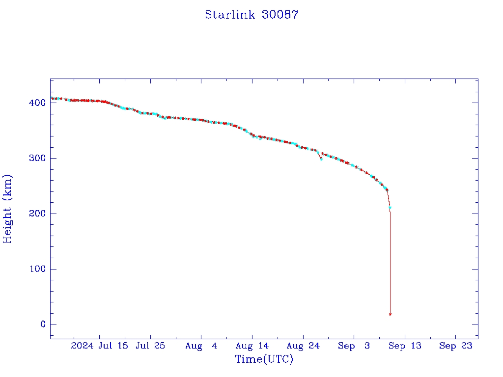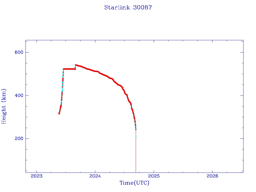 | Starlink 30087 | S56691 | M | 2023 May 19 | 2023 Aug 30 | 2024 Sep 10 |  |  |  |