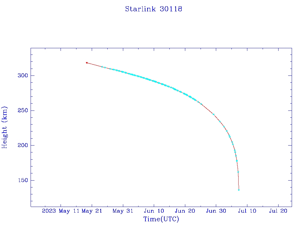 | Starlink 30118 | S56696 | F | 2023 May 19 | 2023 May 19 | 2023 Jul 7 |  |  |  |