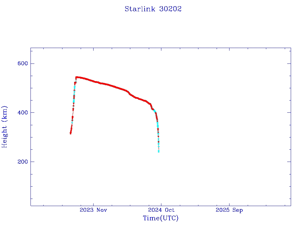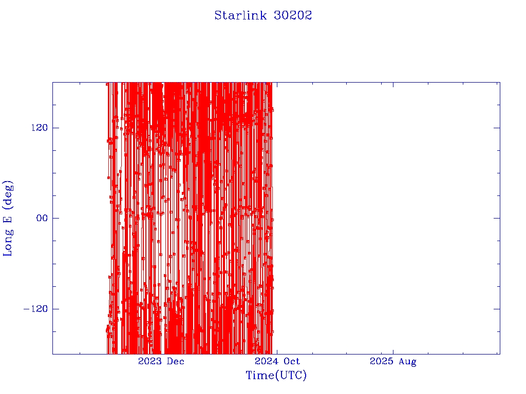 | Starlink 30202 | S57293 | M | 2023 Jul 10 | 2023 Aug 8 | 2024 Sep 17 |  |  |  |