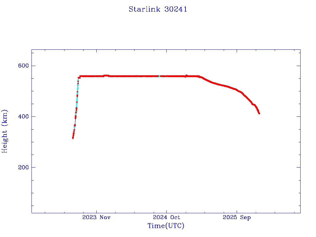 | Starlink 30211 | S57304 | R | 2023 Jul 10 | 2025 May 1? | 2025 Jun 28 |  |  |  |