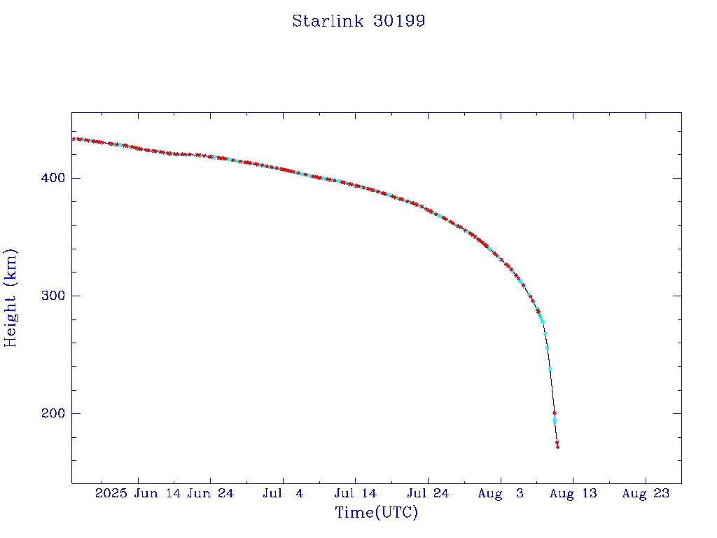 | Starlink 30199 | S57299 | R | 2023 Jul 10 | 2025 Jun 18? | 2025 Aug 10 |  |  |  |