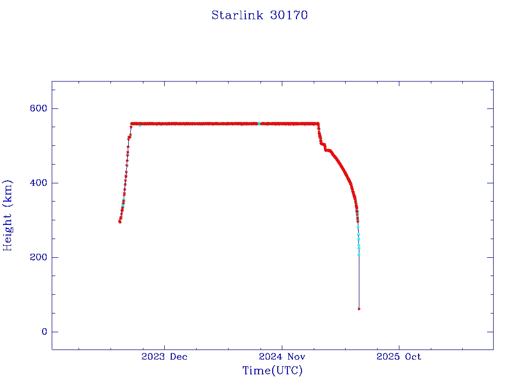 | Starlink 30170 | S57431 | R | 2023 Jul 24 | 2025 May 16? | 2025 Jun 8 |  |  |  |