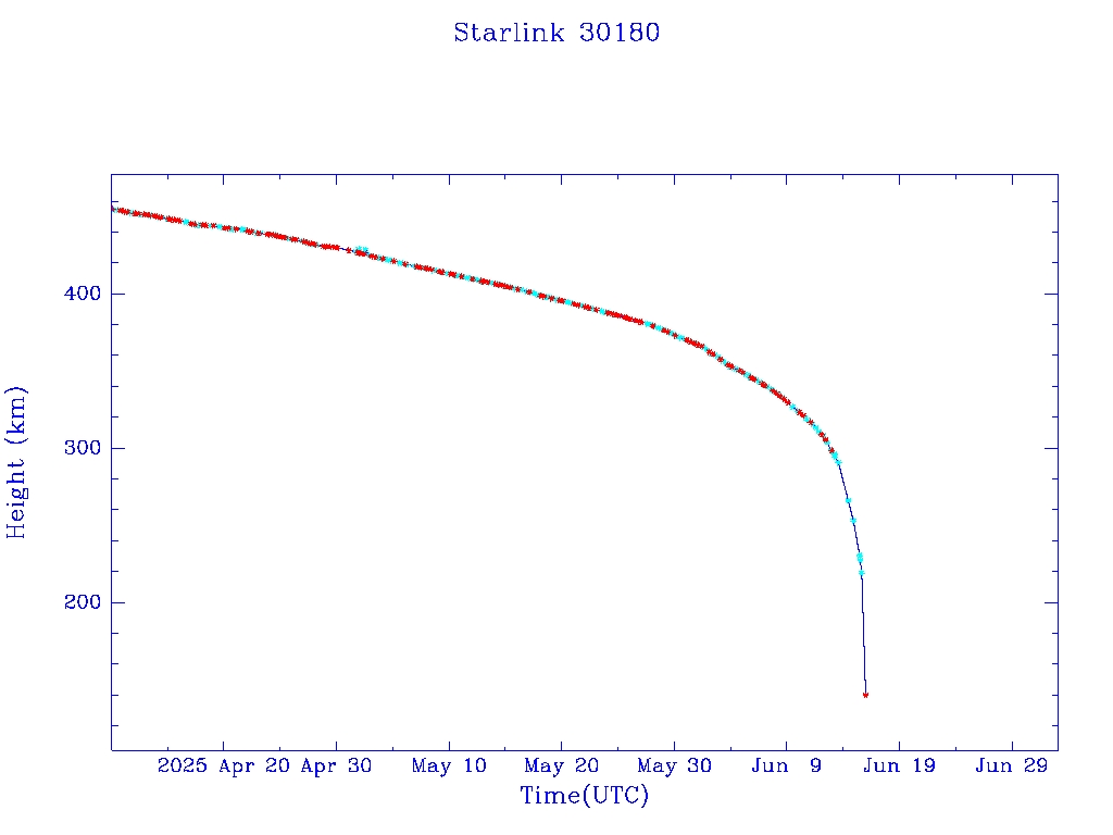 | Starlink 30180 | S57435 | R | 2023 Jul 24 | 2025 May 29? | 2025 Jun 16 |  |  |  |