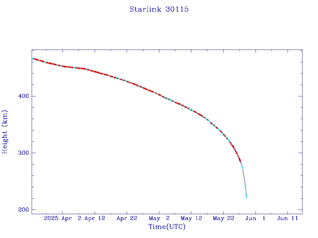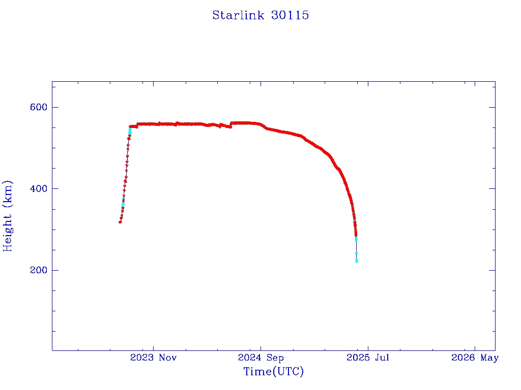| Starlink 30115 | S57464 | R | 2023 Jul 28 | 2025 Apr 8? | 2025 May 29 |  |  |  |