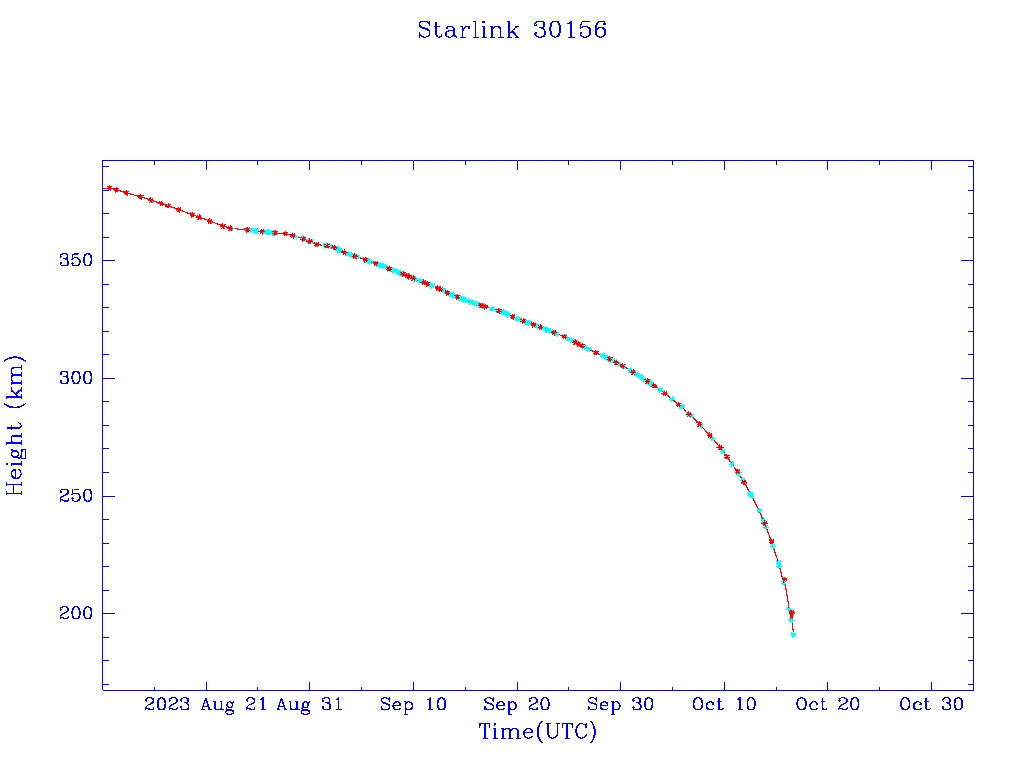 | Starlink 30156 | S57466 | F | 2023 Jul 28 | 2023 Aug 30? | 2023 Oct 17 |  |  |  |