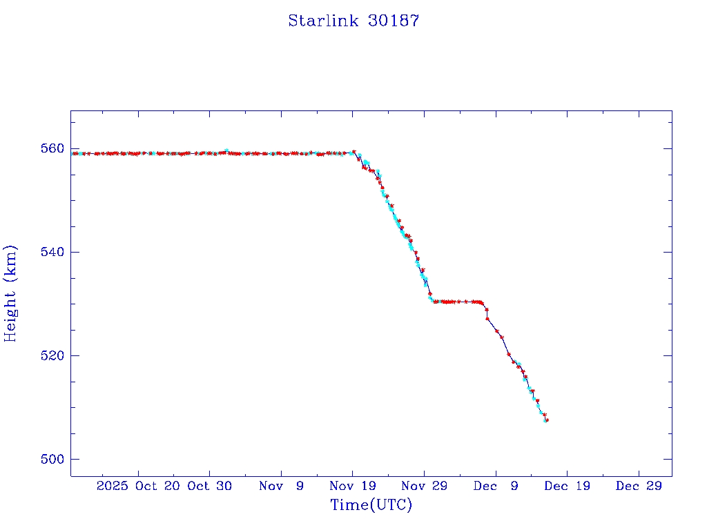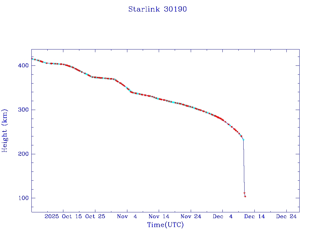 | Starlink 30190 | S57471 | R | 2023 Jul 28 | 2025 Nov 16? | 2025 Dec 11 |  |  |  |