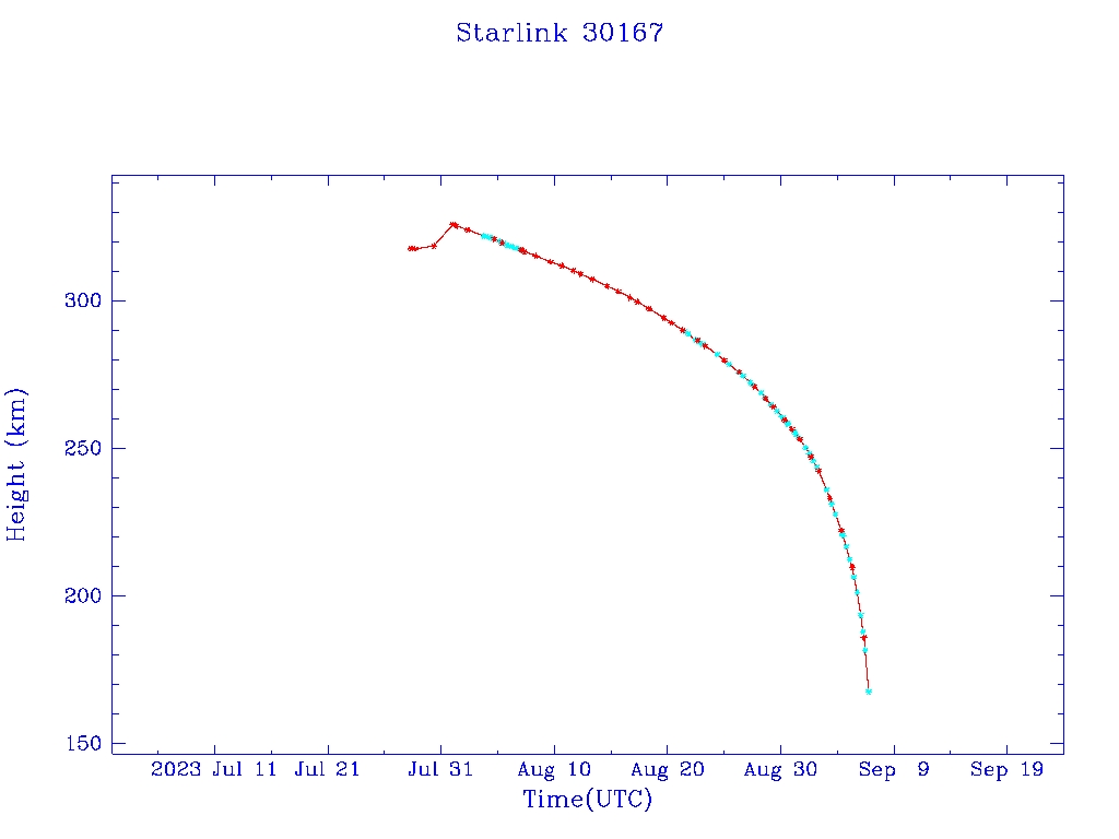| Starlink 30167 | S57478 | F | 2023 Jul 28 | 2023 Aug 1 | 2023 Sep 6 |  |  |  |