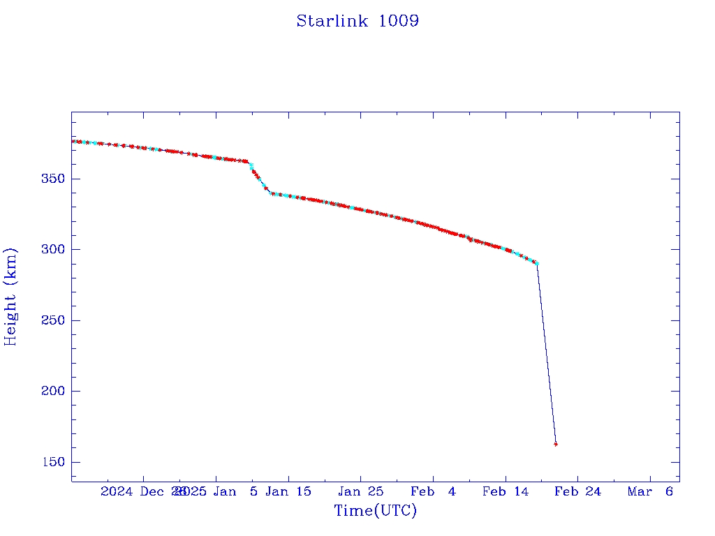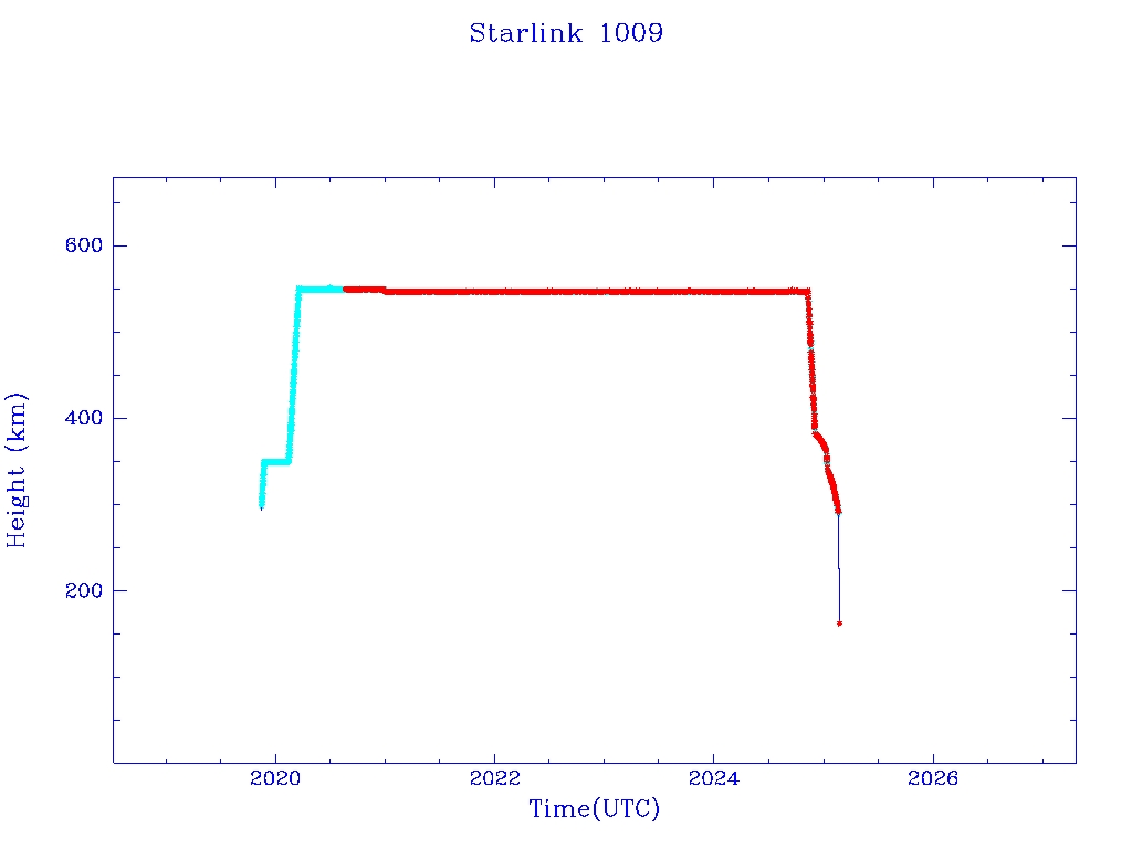 | Starlink 1009 | S44715 | R | 2019 Nov 11 | 2025 Feb 18? | 2025 Feb 21 |  |  |  |