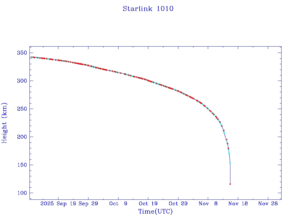 | Starlink 1010 | S44716 | R | 2019 Nov 11 | 2025 Oct 4? | 2025 Nov 15 |  |  |  |