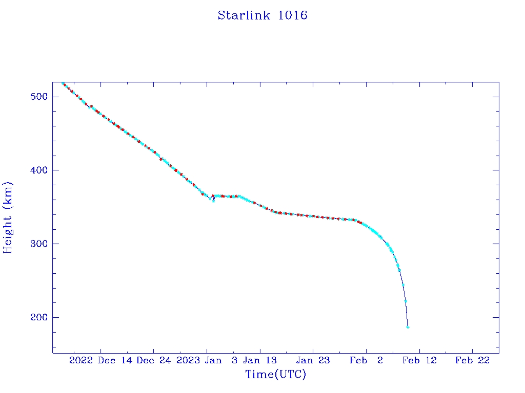 | Starlink 1016 | S44722 | R | 2019 Nov 11 | 2023 Jan 31 | 2023 Feb 9 |  |  |  |