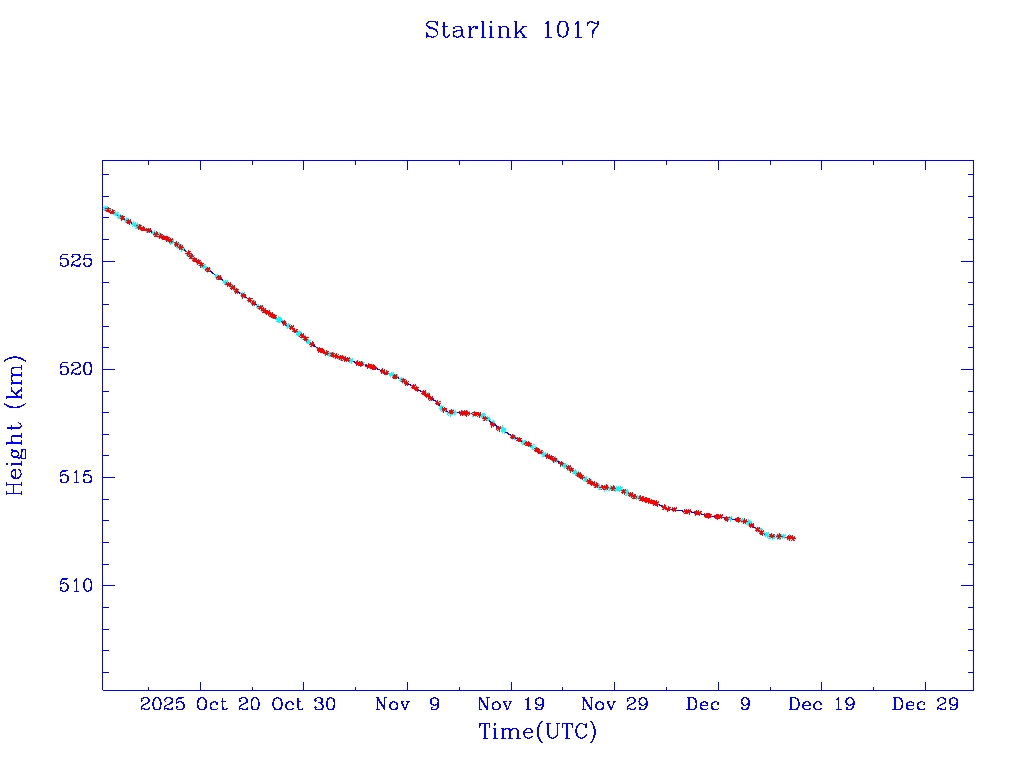 | Starlink 1017 | S44723 | R | 2019 Nov 11 | * | - |  |  |  |