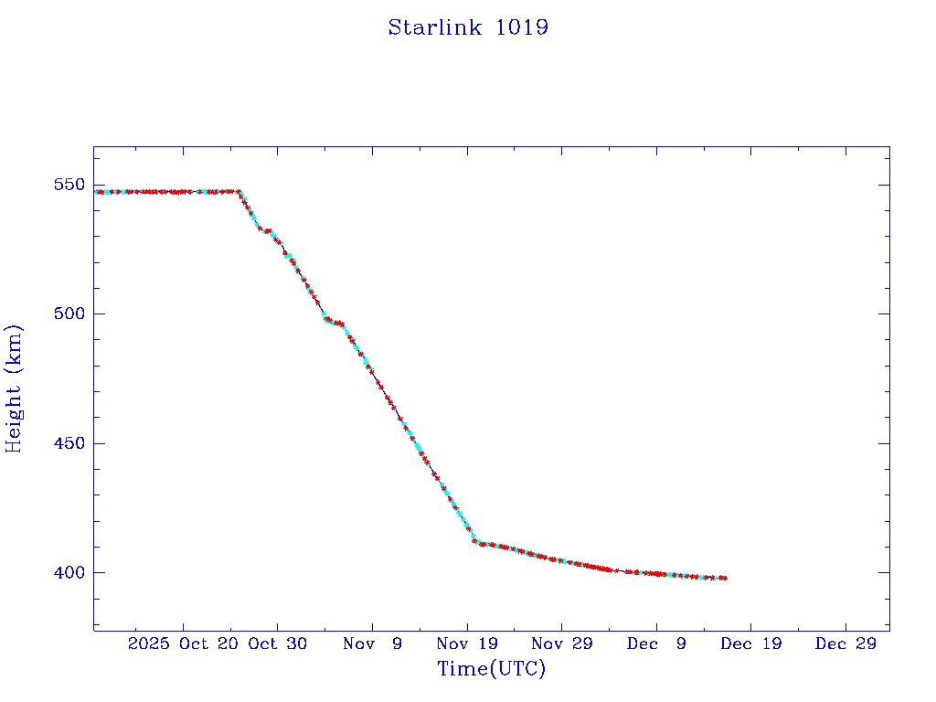 | Starlink 1029 | S44734 | R | 2019 Nov 11 | 2025 Jul 29? | 2025 Oct 18 |  |  |  |