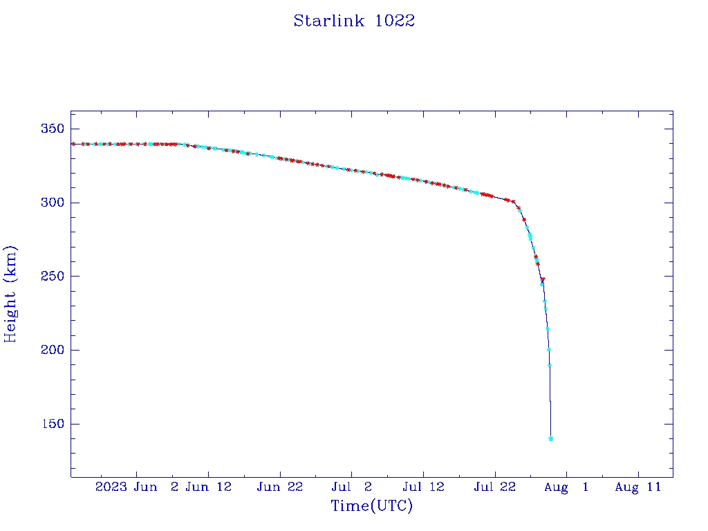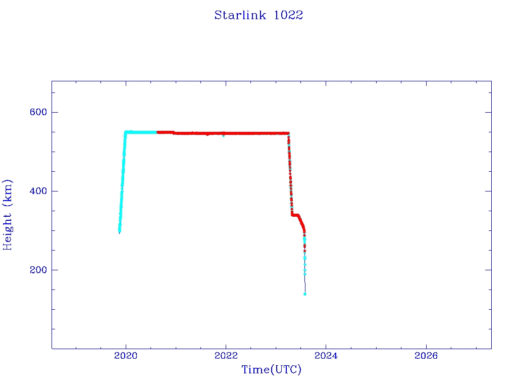 | Starlink 1022 | S44727 | R | 2019 Nov 11 | 2023 Jul 25 | 2023 Jul 29 |  |  |  |