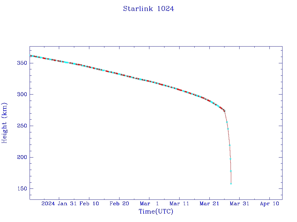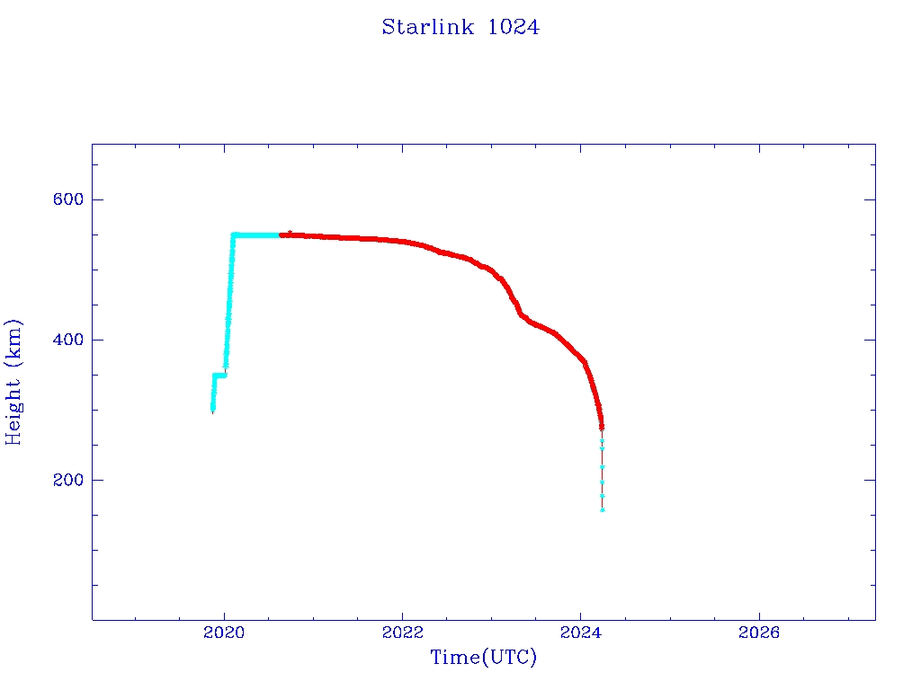| Starlink 1024 | S44729 | M | 2019 Nov 11 | 2020 Sep 25? | 2024 Mar 28 |  |  |  |