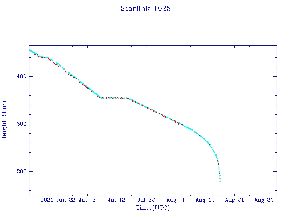 | Starlink 1025 | S44730 | R | 2019 Nov 11 | 2021 Jul 15 | 2021 Aug 18 |  |  |  |
