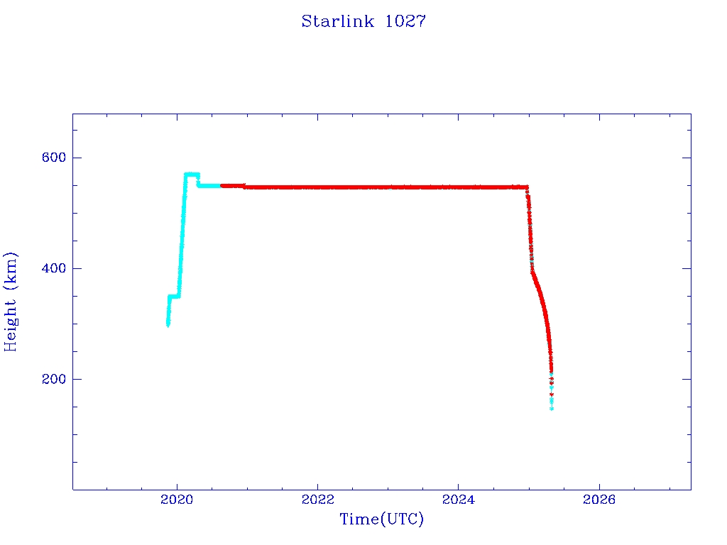 | Starlink 1027 | S44732 | R | 2019 Nov 11 | 2025 Jan 17? | 2025 Apr 27 |  |  |  |