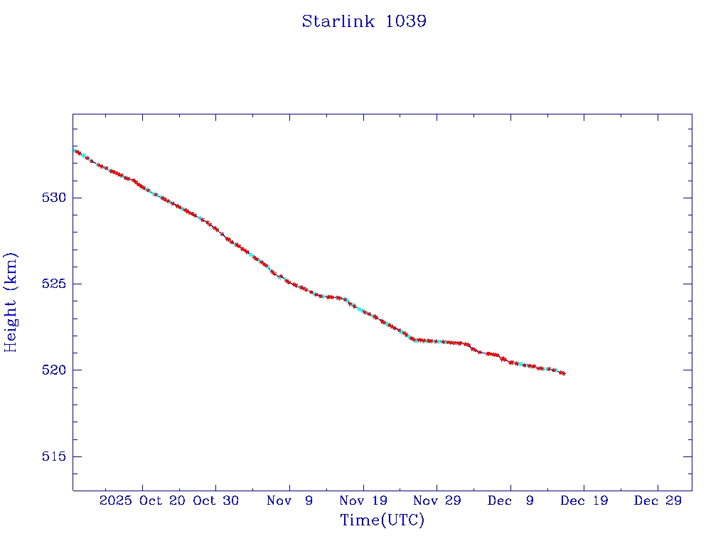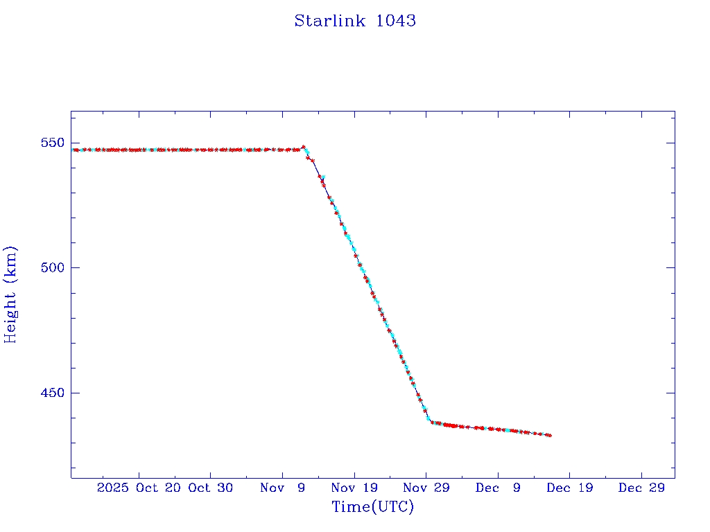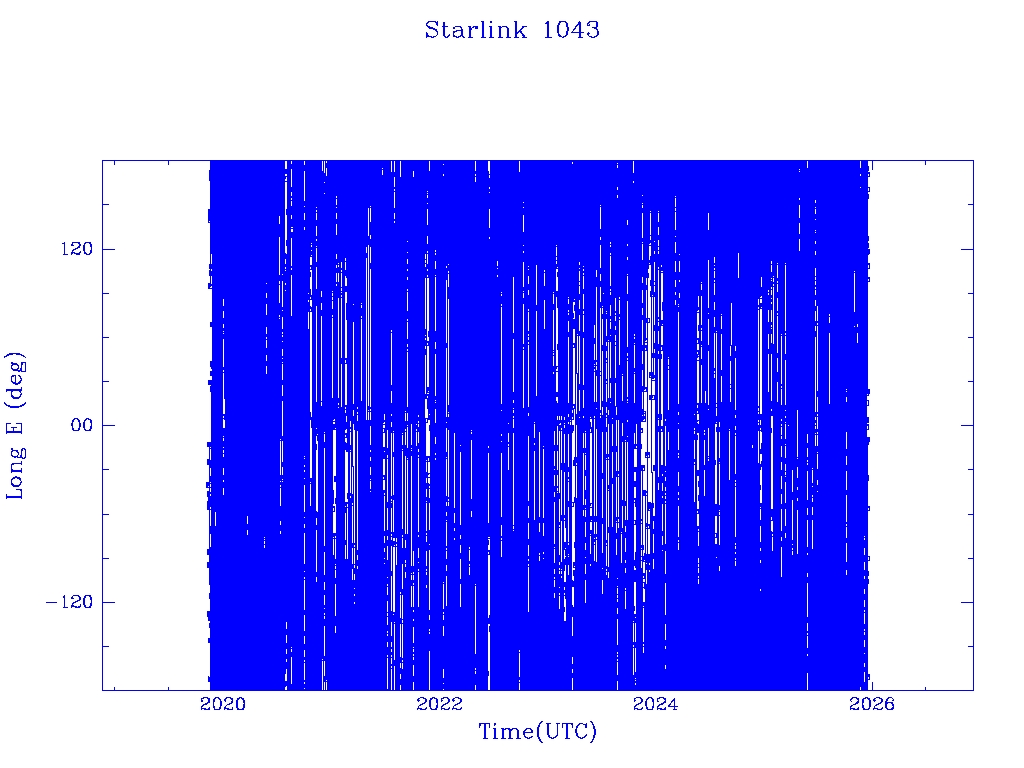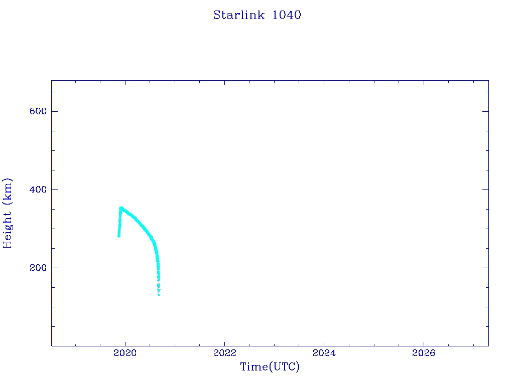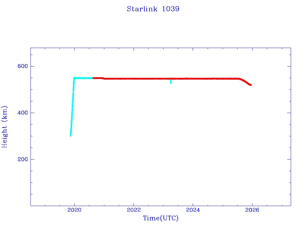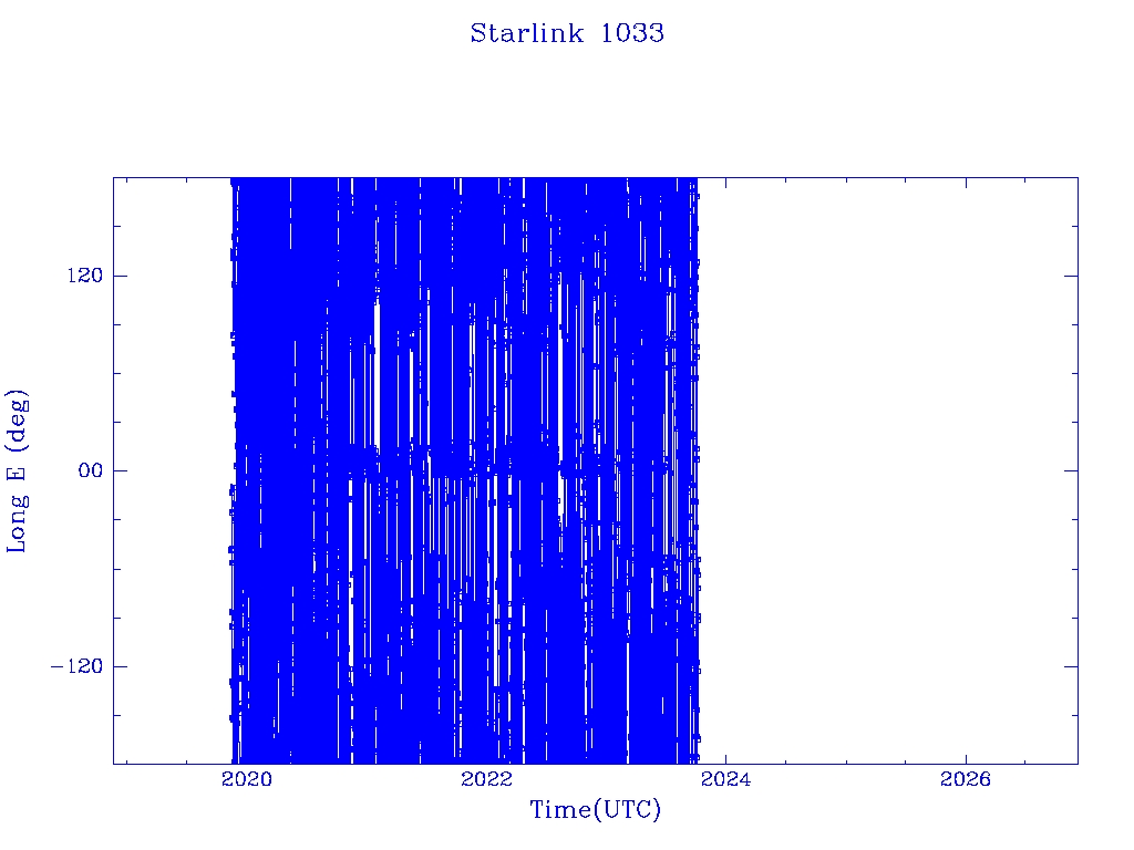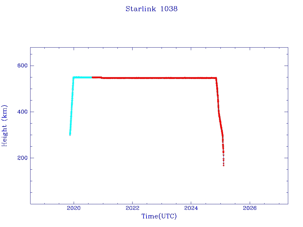 | Starlink 1038 | S44743 | R | 2019 Nov 11 | 2025 Jan 30? | 2025 Feb 8 |  |  |  |